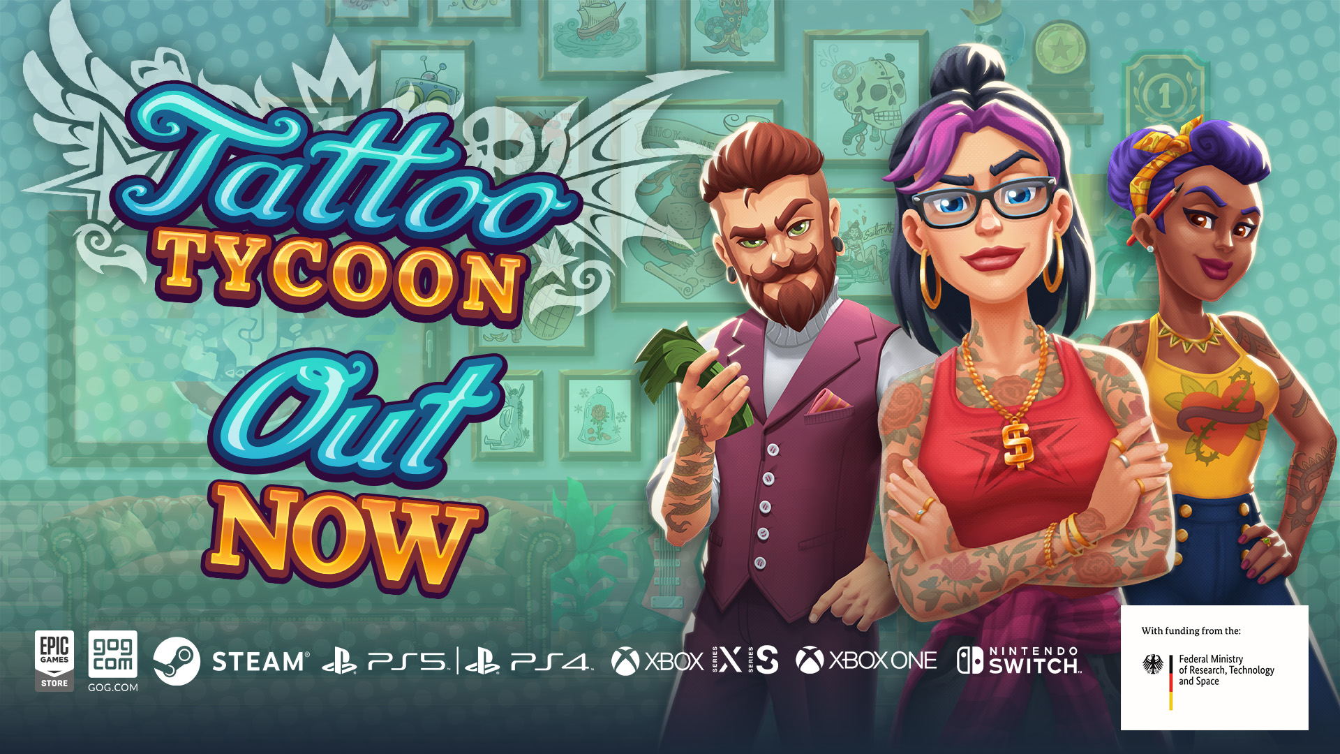 Tattoo Tycoon is being developed by CrazyBunch, published by HandyGames, and supported by the Federal Ministry for Research, Technology and Space with Federal funding for video games.