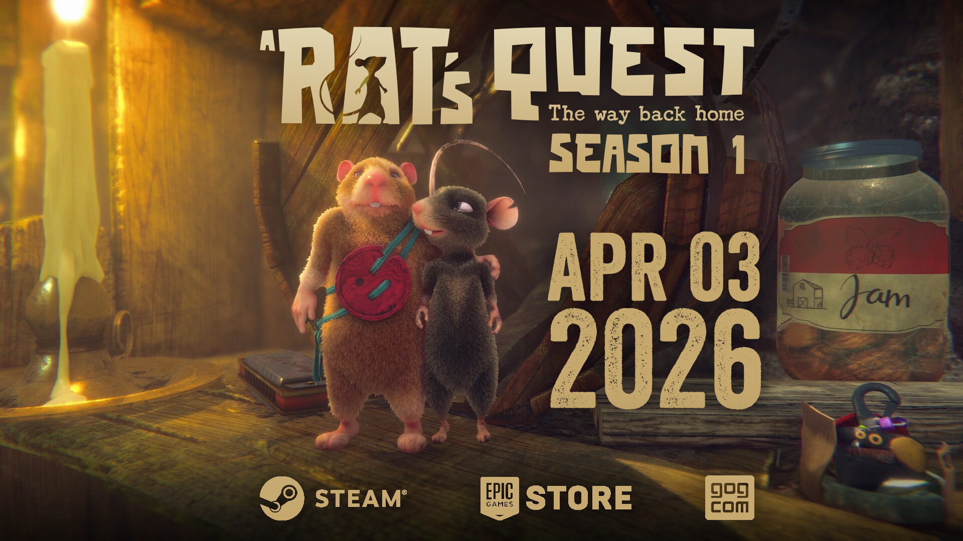 Mark your calendars. The quest for love and adventure begins on April 3rd, 2026. A Rat's Quest - The Way Back Home | Season 1 will be available on Steam, the Epic Games Store, and GOG, priced at $ 19.99 / € 19,99. Wishlist the game now and prepare for a wild ride!